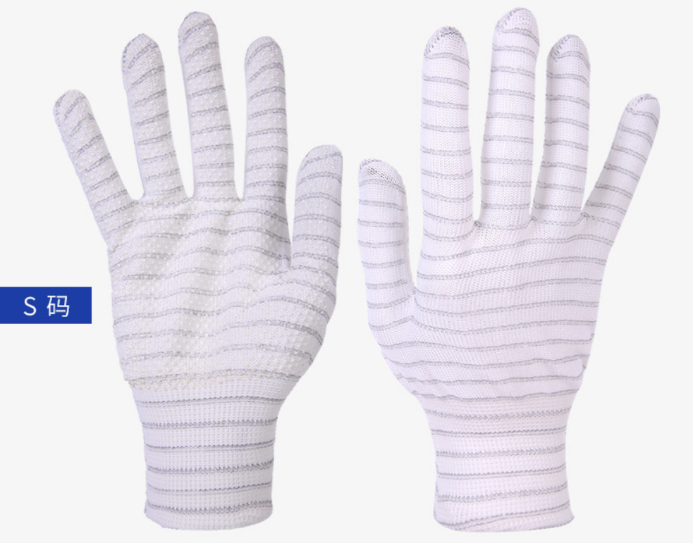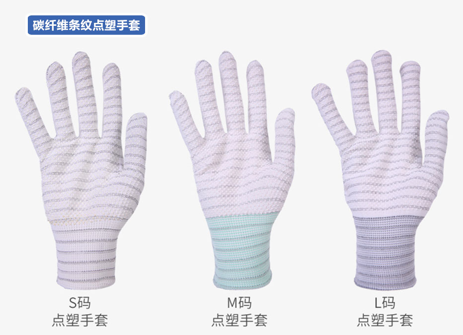 碳纖維條紋點(diǎn)塑手套又稱碳纖維點(diǎn)塑防滑防靜電手套,其制作方法是在針織尼龍手套的整個(gè)手指和手掌部位涂上一層PU點(diǎn)塑樹脂,這樣既增加了防滑性能,又增加了隔熱性能,同時(shí)能防止人體手掌的手汗和微粒污染,是精密電子生產(chǎn)線不可缺少的產(chǎn)品??捎糜诰ぶ圃鞓I(yè)、紡織業(yè)、電子行業(yè)、電力工程、汽車裝配、無塵車間等領(lǐng)域。