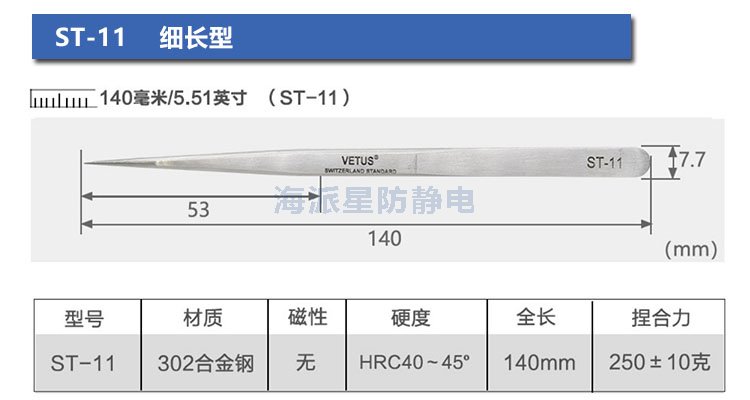| ST-11 | 鑷子更加細(xì)長(zhǎng),適合在狹小空間更換精密元件 | ||||||