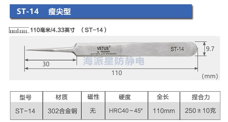 | ST-12 | 鑷子長(zhǎng)度更長(zhǎng),前端寬度更寬,適合夾取電路板等比較用力場(chǎng)合 | ||||||